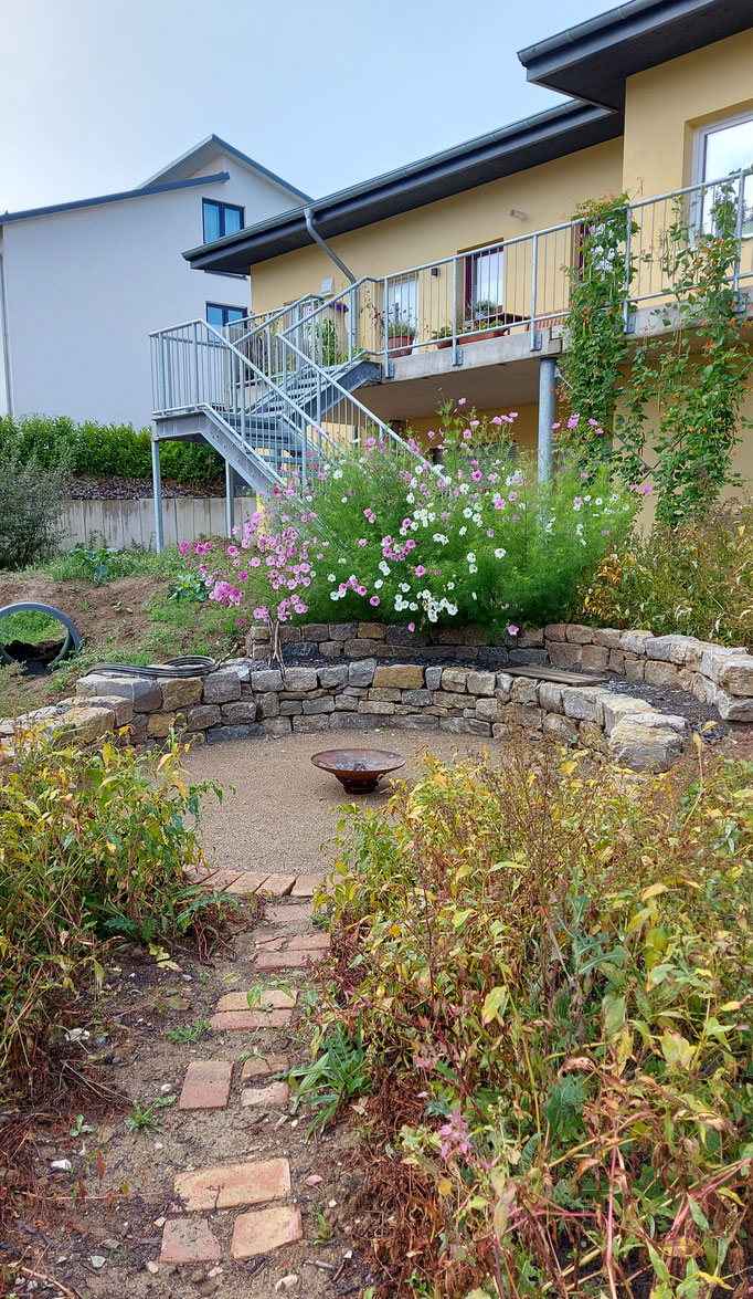 bisschen hübscher. Das Amphitheaterchen soll noch wachsen und an den Wegen im Innenhof werden ein paar Arbeiten gemacht, so weit das Wetter es