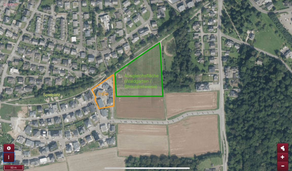 Das Grundstück liegt naturnah, nur wenige Minuten vom Wald entfernt und ist ebenso gut an die städtische Infrastruktur angebunden